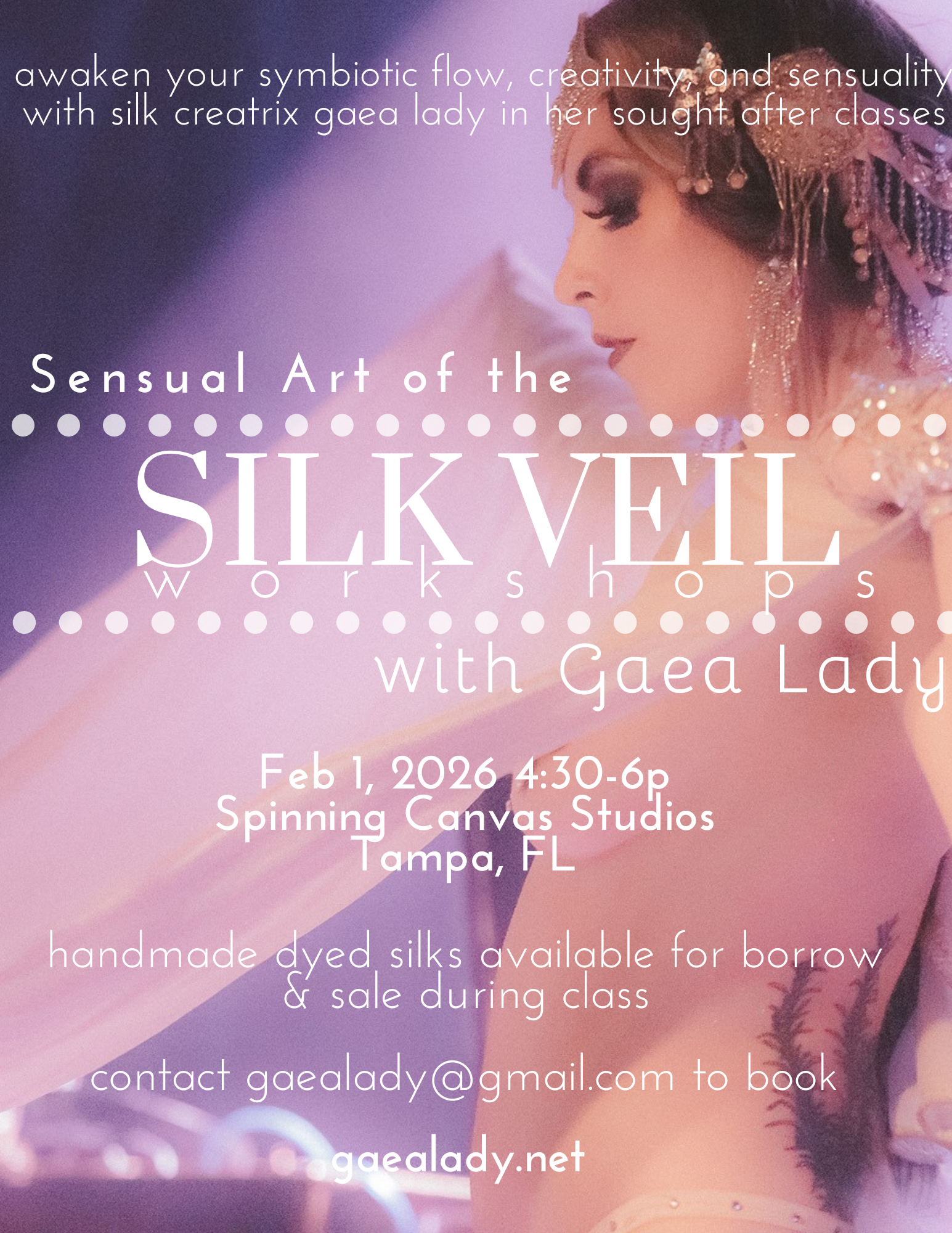 Silk Veil Masterclasses & Tutorials: Learn my signature weighted veil style as I personally guide you in flow techniques developed over a decade+ of training, flow explorations, performances, and play. Sharpen your skills for guiding the weighted veil prop as you awaken new ways of being in your flowing body. I encourage you to look inwards to encounter spiritual & healing aspects just as much as I encourage outwards authentically expressive performance.