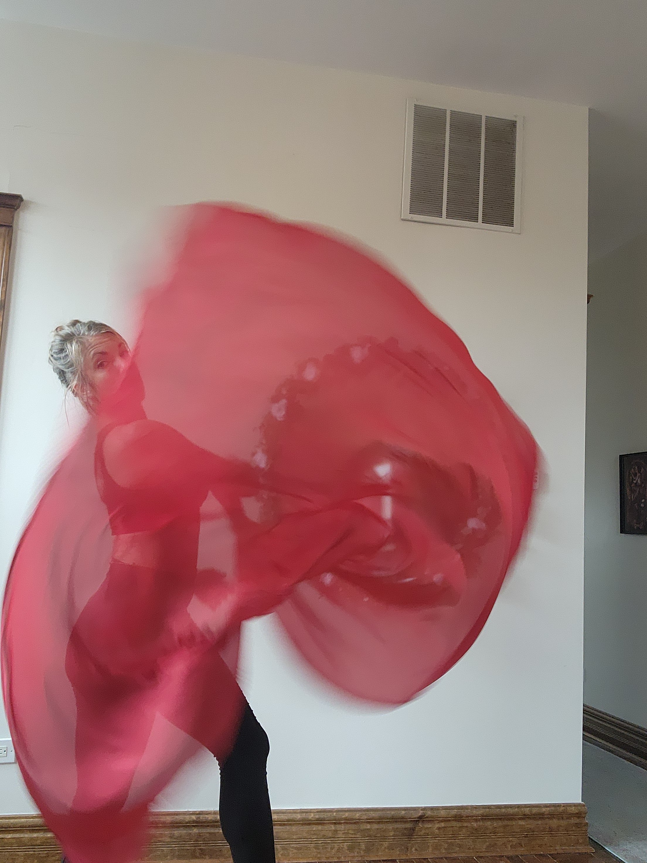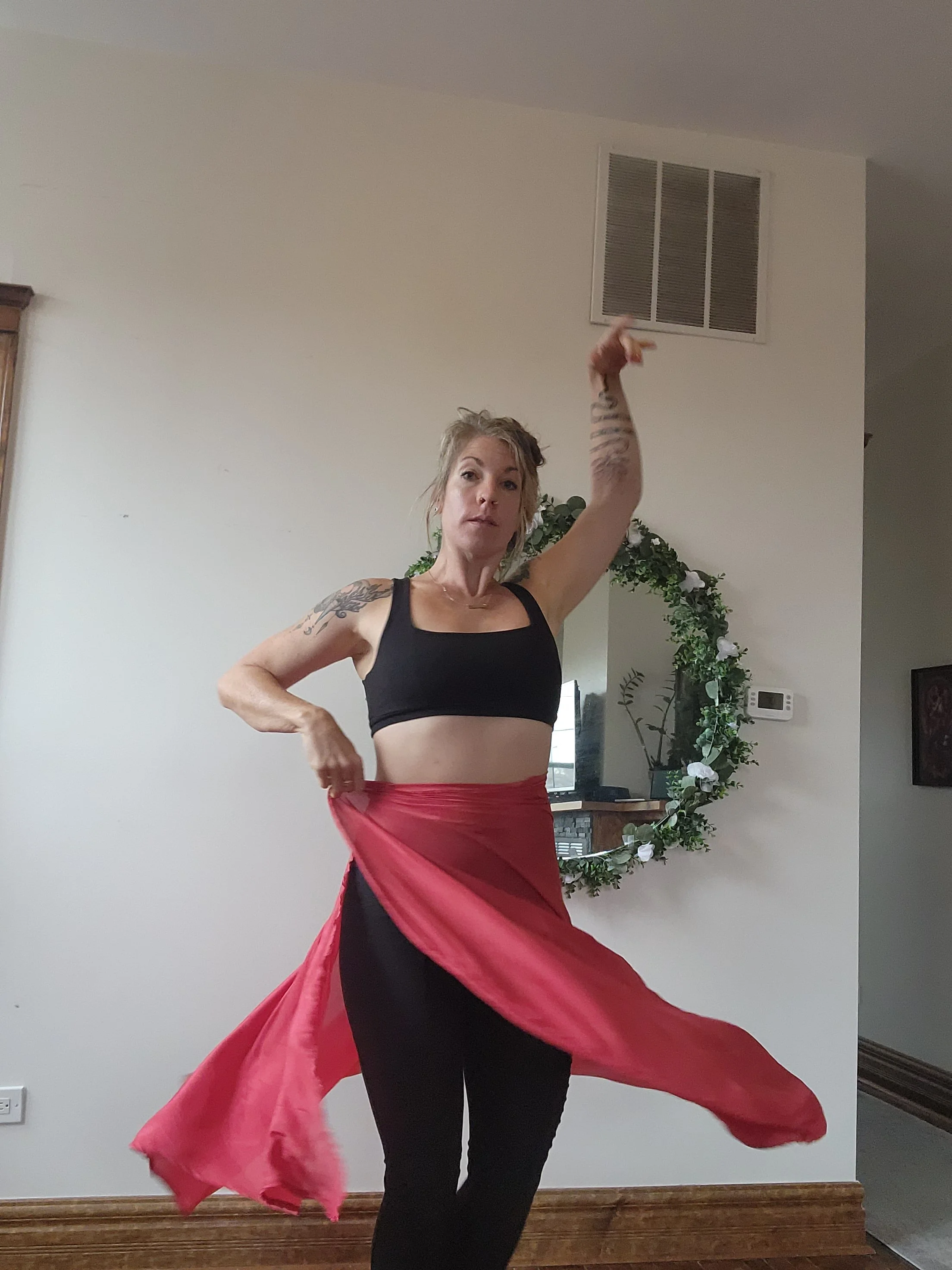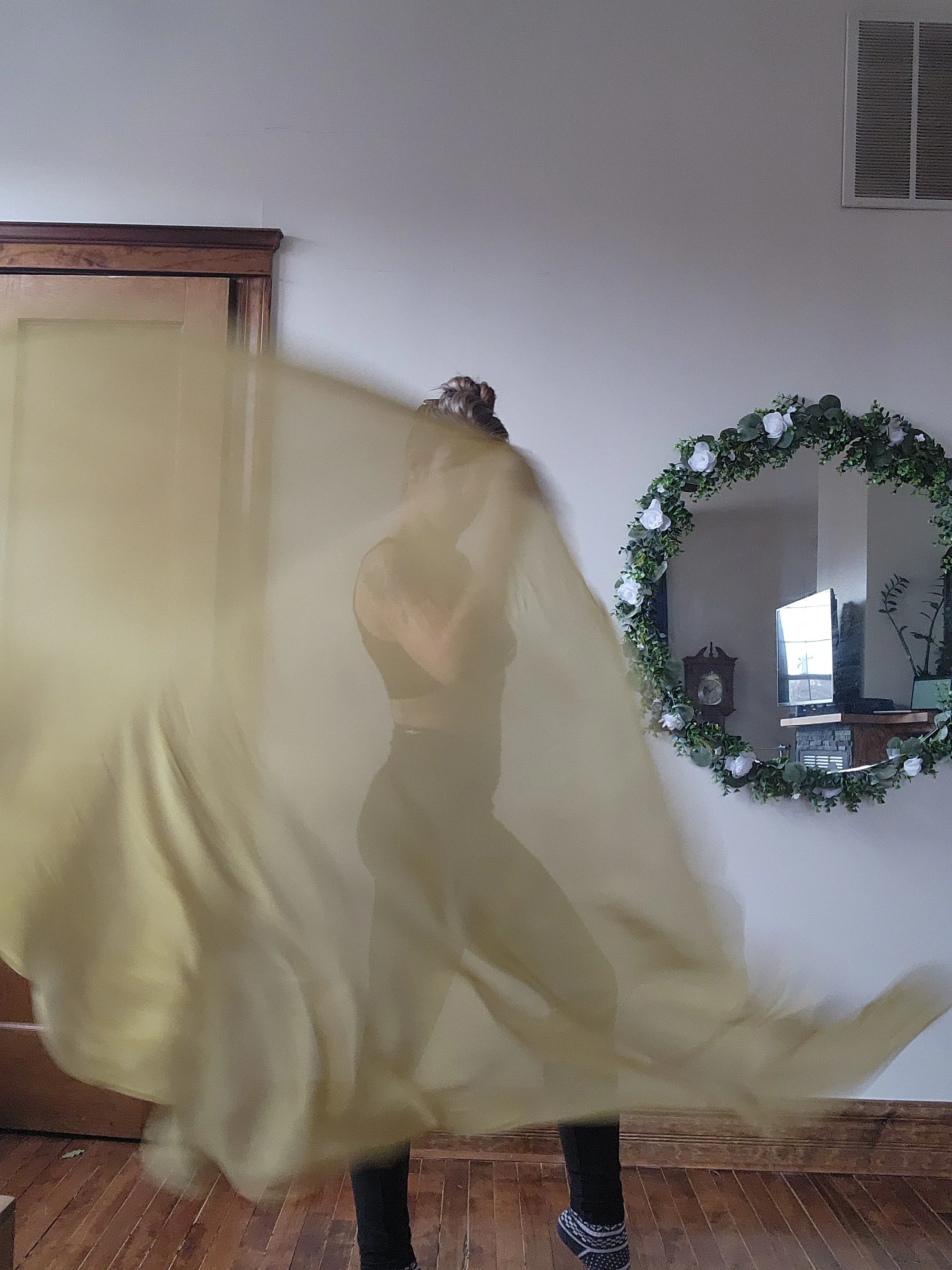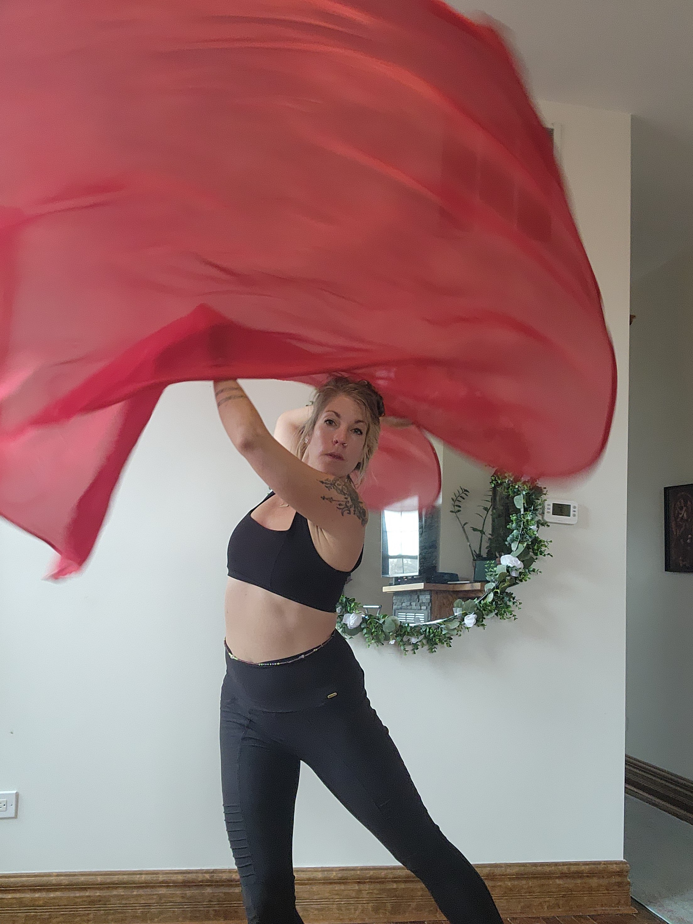 Each weighted silk veil is a unique art piece, created by Gaea Lady (assisted by Laine Bones). This style of ‘flow prop’ is designed to get you out of your head and into your body by enveloping both dancer and viewers in high quality Chinese silk. It is accessible to beginners, yet offers complexity for years and years of devoted explorations & refinement. The weighted edge ‘leads’ the rest of the veil, offering more direction than just a silk veil itself. A whole flow-losophy has emerged out of Gaea’s experience with this prop, and she teaches online via classes & tours sharing it. Versatile: costume, garment, skirt, cape, wrap ; as a decorative element in the home ; and as flow prop that can be used in a myriad of ways. (This design is the product of 10+ years of development and refinement by Gaea herself, please do not replicate without permission! )