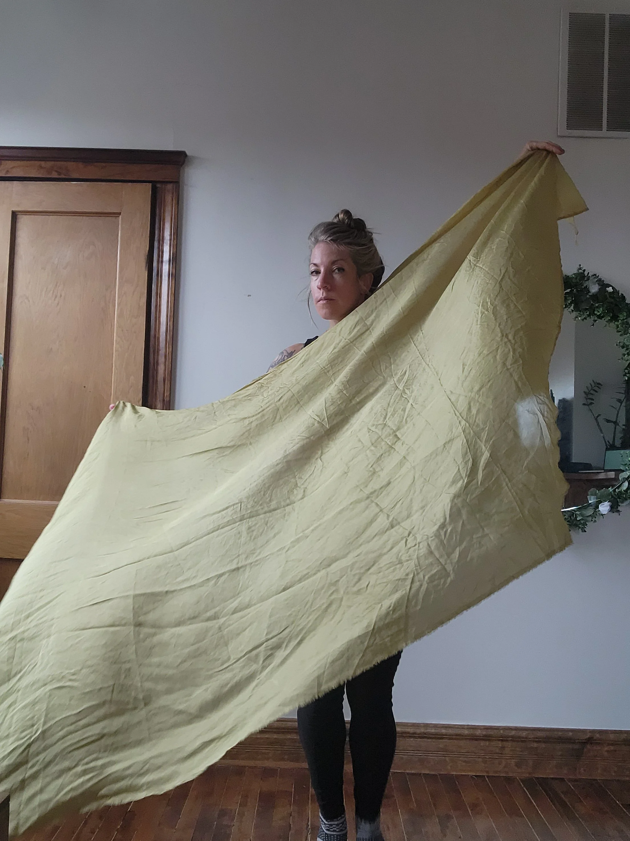 Wrap yourself in the fae mystique of herbal feel - this veil dyed with Buckthorn Berry natural dyes over an open cauldron at Caryatis Farms! The long tail creates intimate curvature to match the body and the spirals of nature, while the color encompasses brightness and vitality without being too bright or electric. It’s a perfect springtime swoosh, a summer dance partner, an autumn remembrance, and a winter pick me up.