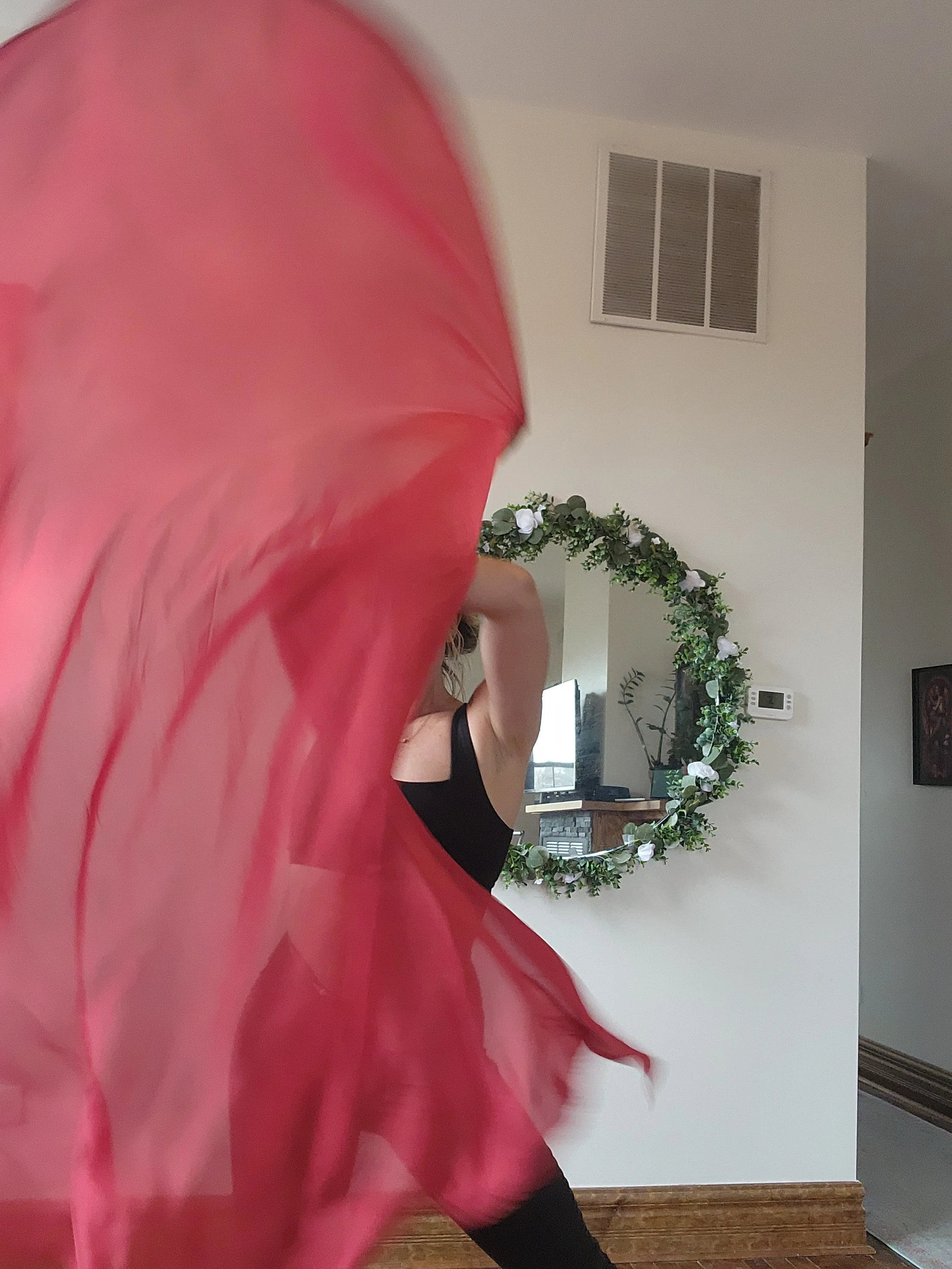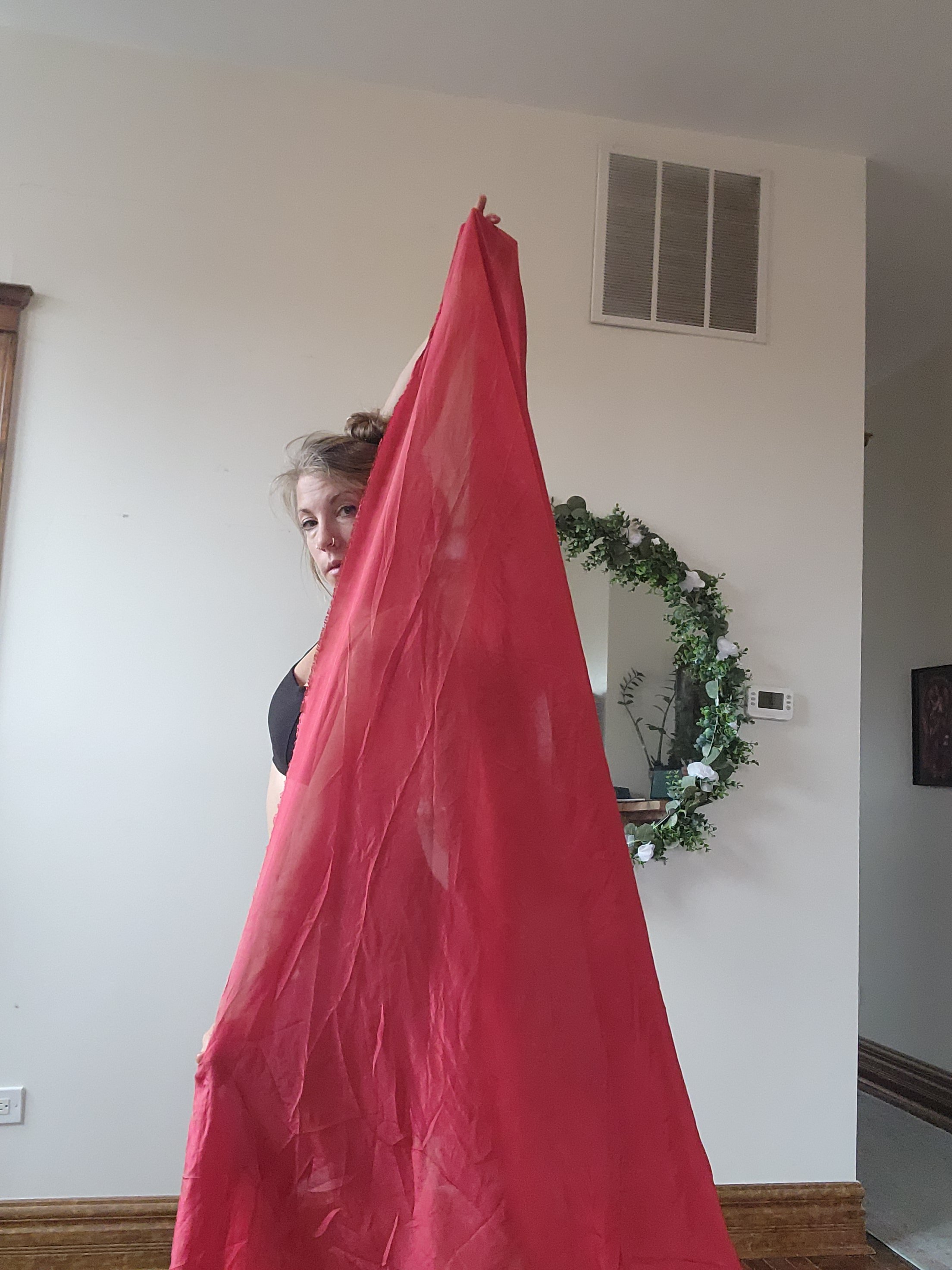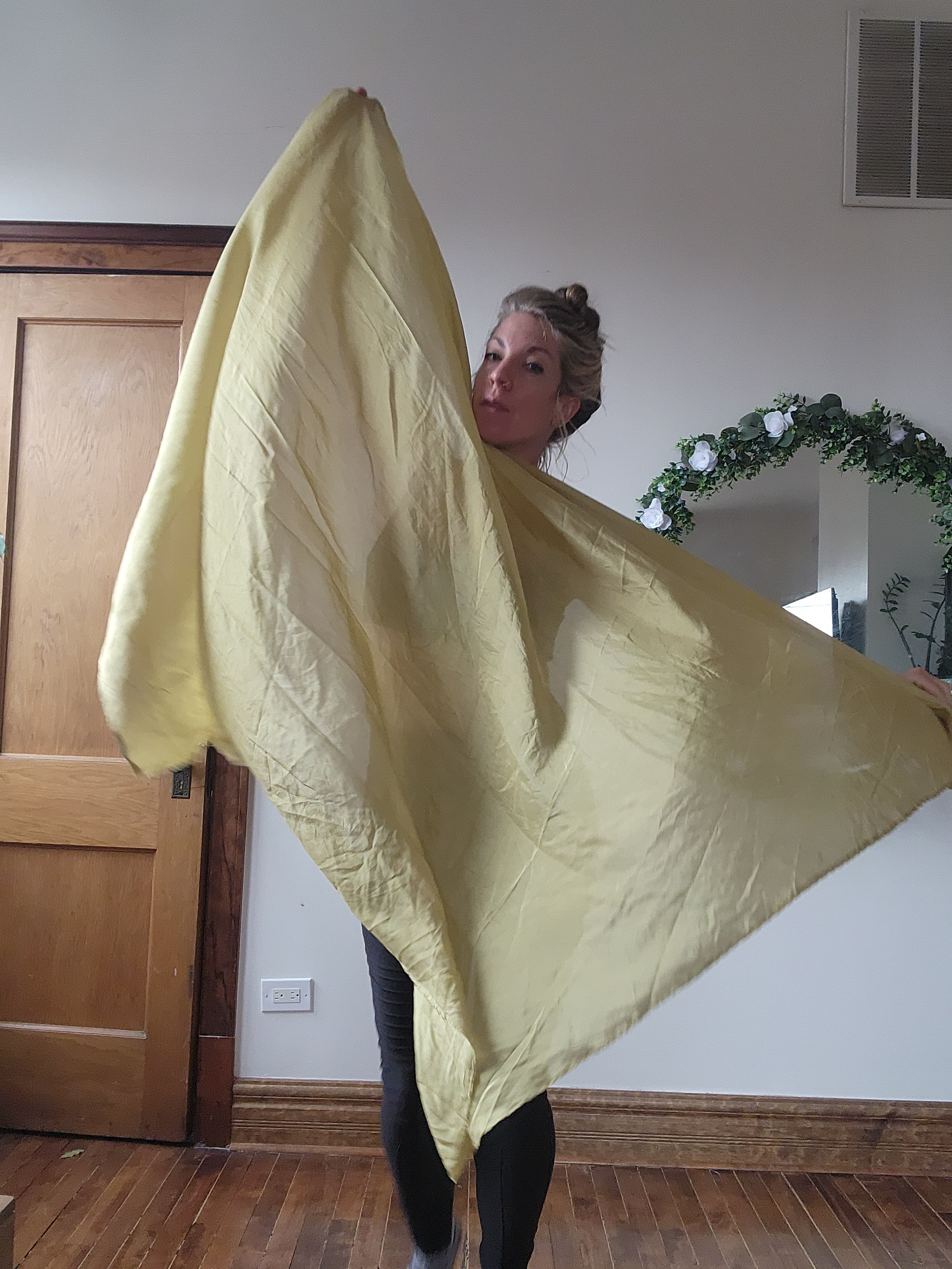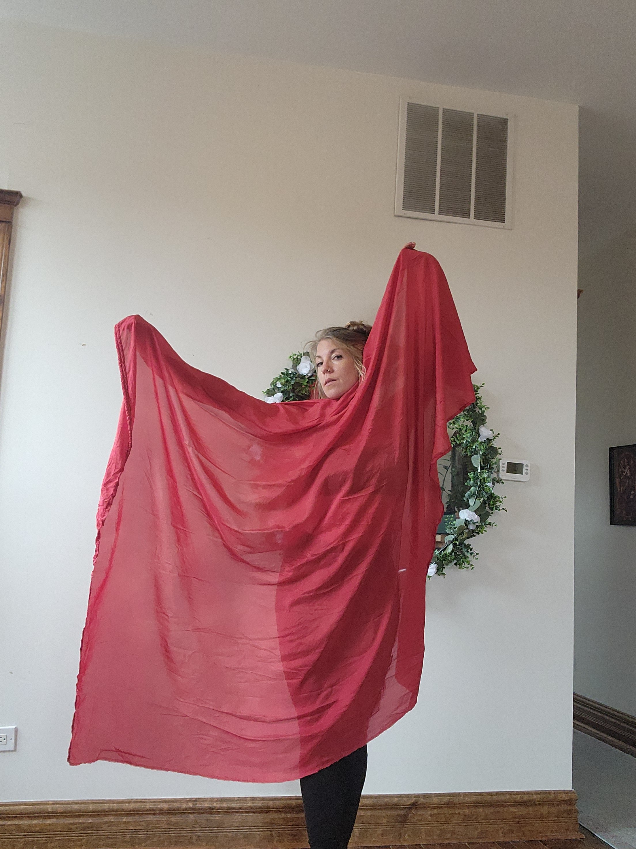Each veil purchase comes with a “Care & Keeping” sheet with a link to free intro classes & silk veil challenges.