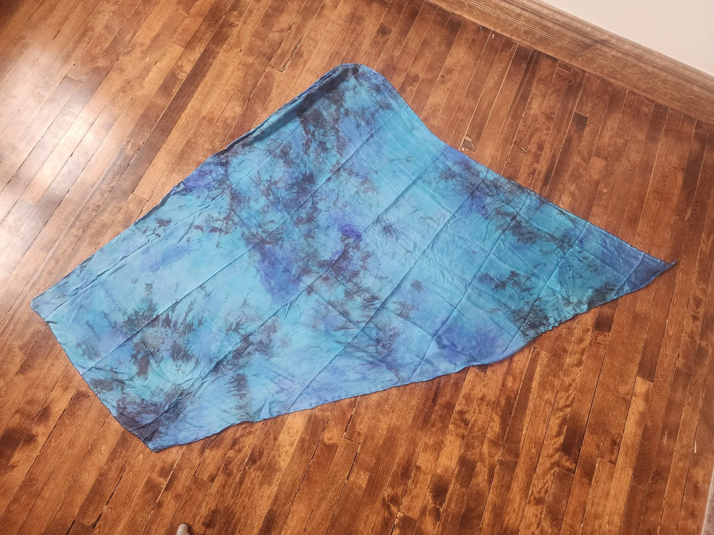 Deep midnight black blue swirls around you, a perfect starless night to dream upon. The sheer of the ultralightweight fabric is airy and floating, as you cast spells with your movement and invoke your highest desires into being. These diaphanous silken wings are perfect to take up a lot of space while having just the right amount of bend with their tails for internal rotations and technique. Transport yourself!