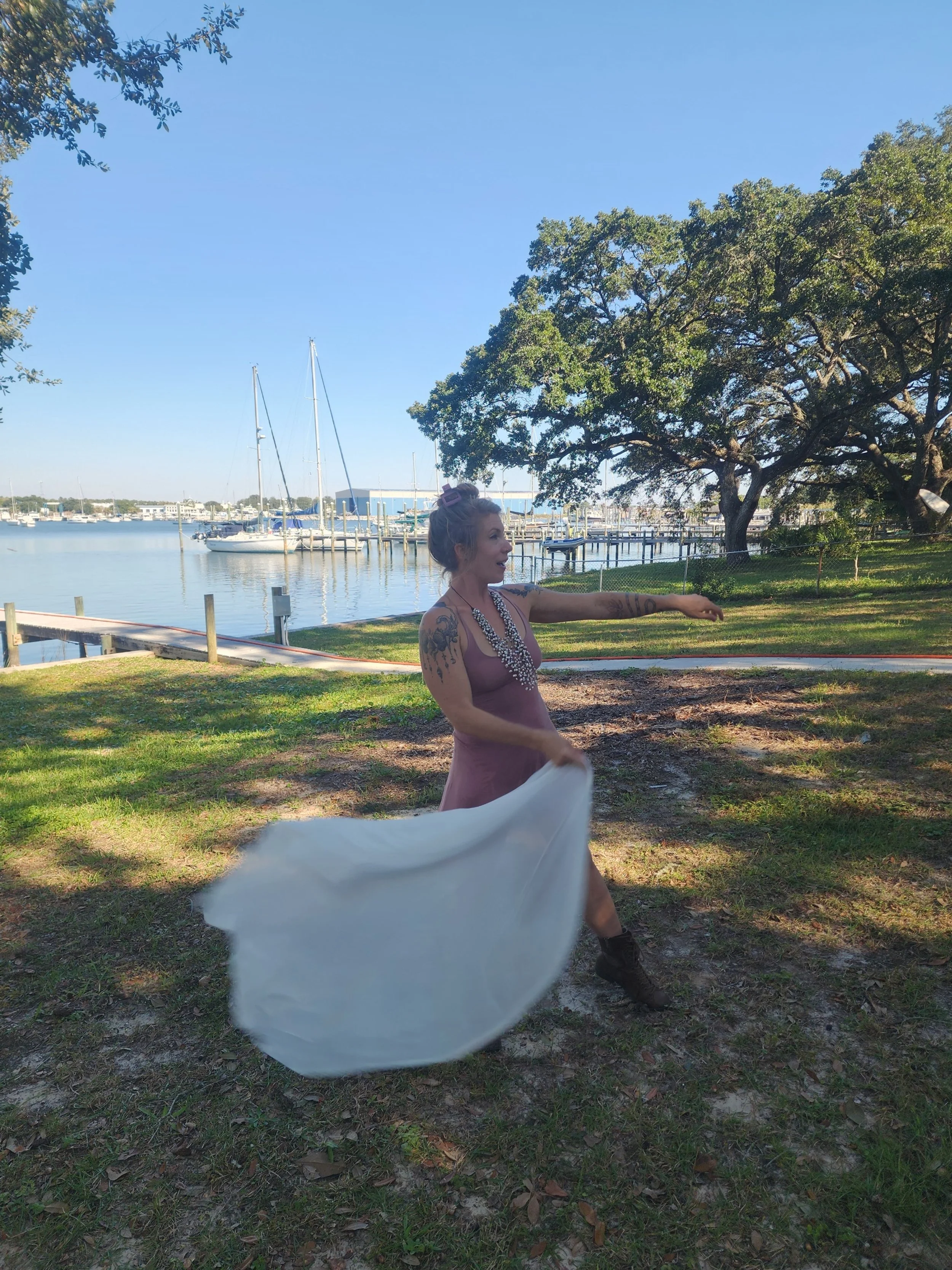Each veil purchase comes with a “Care & Keeping” sheet with a link to free intro classes & silk veil challenges.