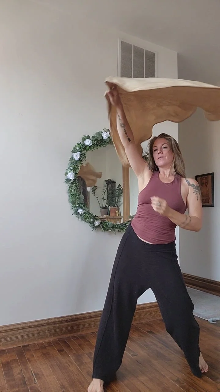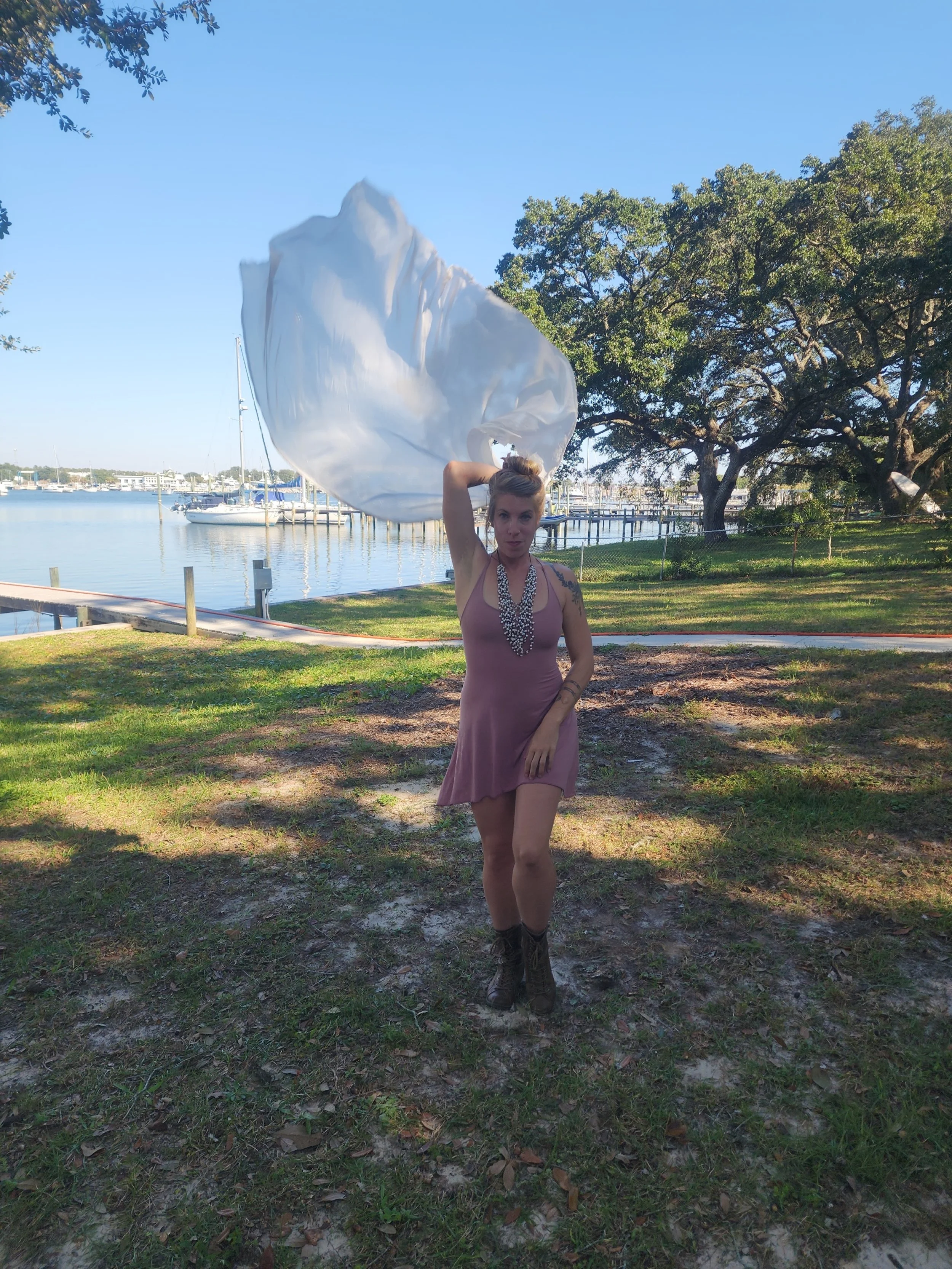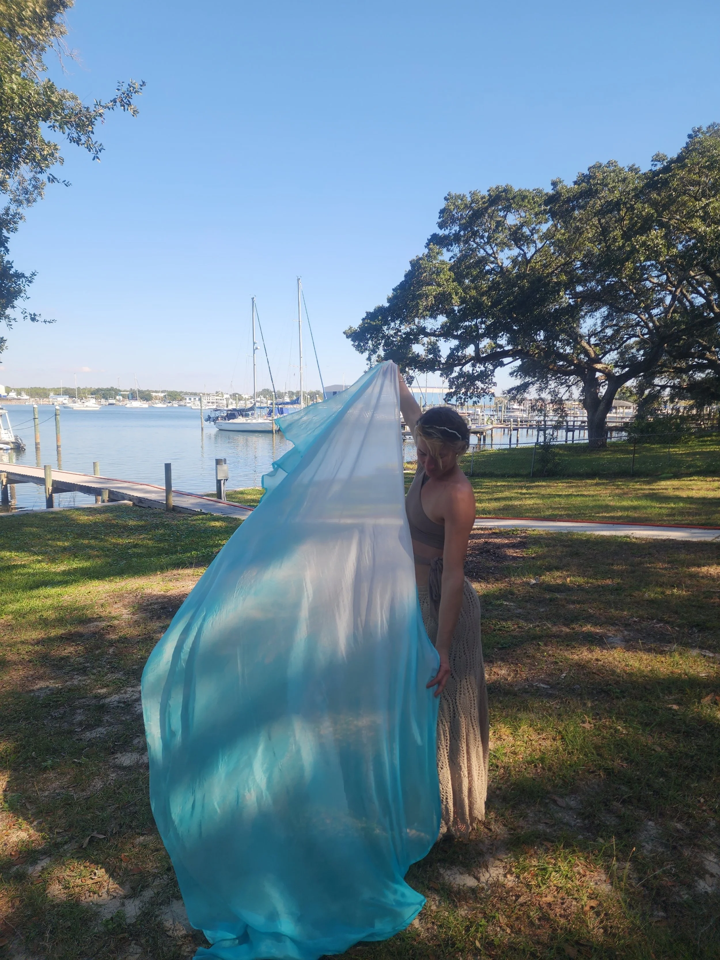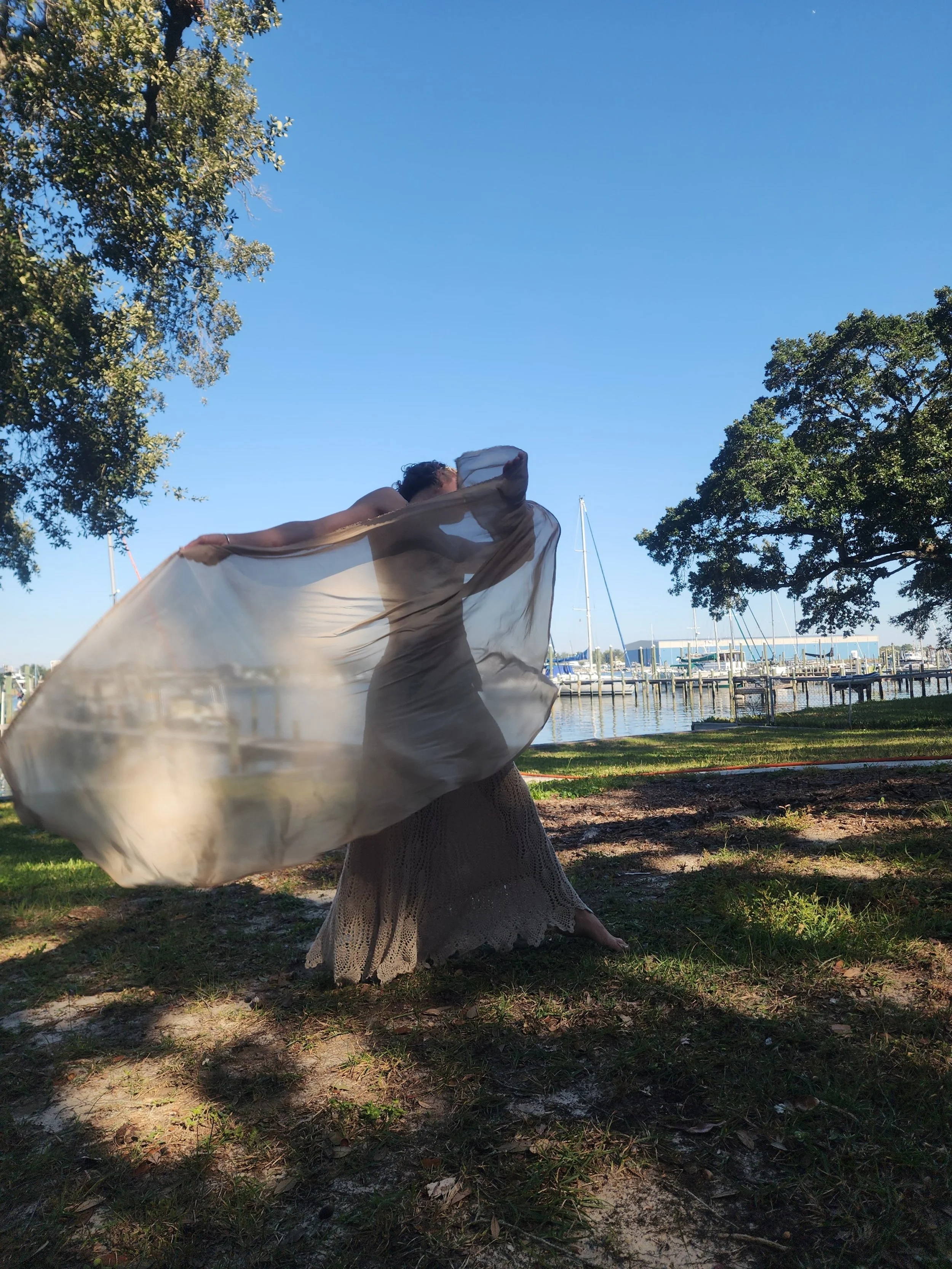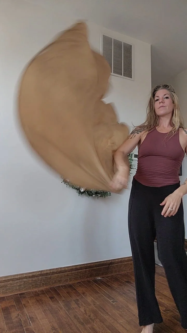 Movement : This small style veil is also known as a “flag”. It’s a fast moving technical dream, small to avoid the tangles of large veils in small spaces. These tend to be easier for beginners starting their flow journey, and are great to use dual handed for a brain expanding flow. Small veils are tuckable, travel-able, and super fun for a fast-paced flow.